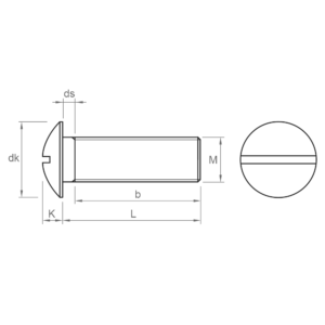 Cylindrical head and straight slot. Ideal for simple fastenings with a manual screwdriver, without high torque requirements.